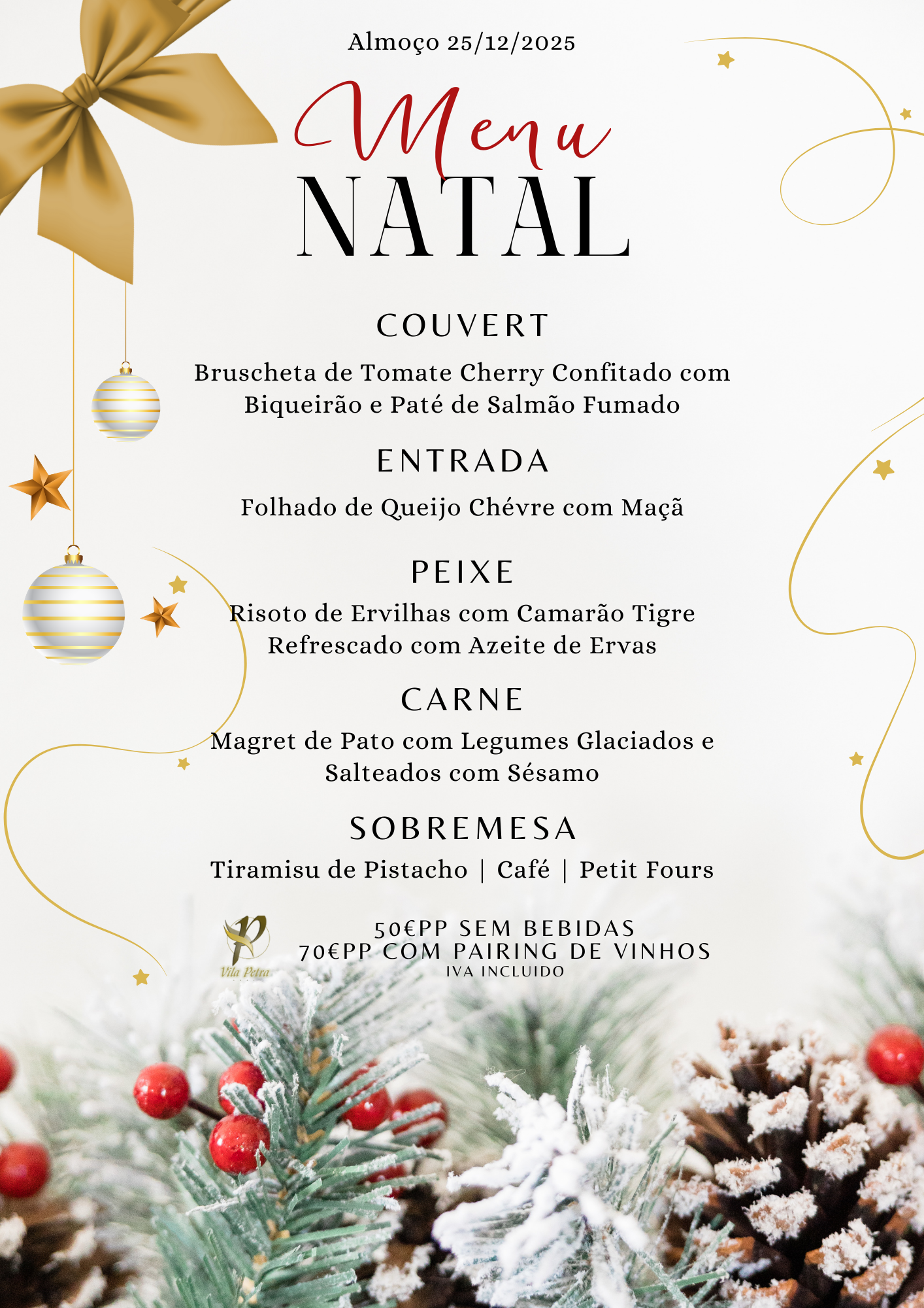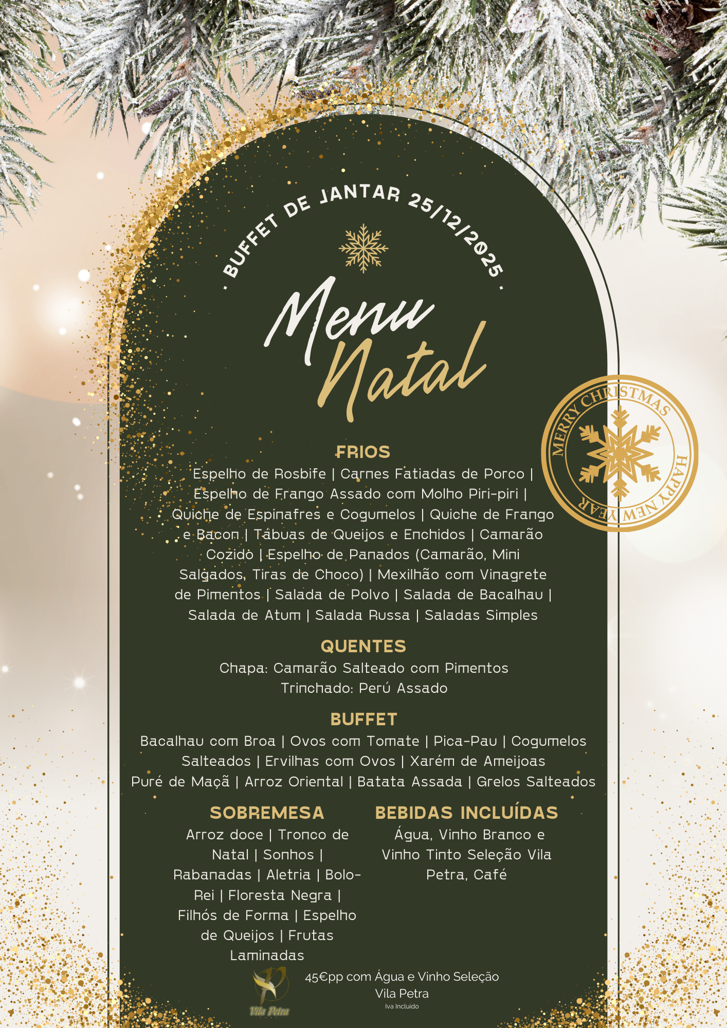 Celebre a véspera de Natal na Vila Petra com uma ceia única, envolta num ambiente acolhedor e festivo.